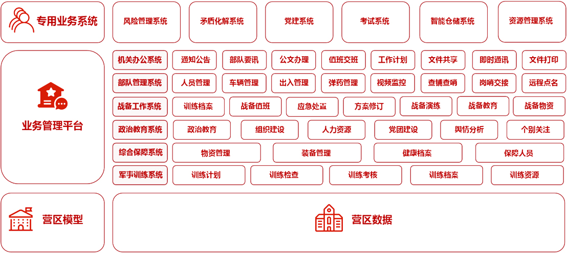 軍營專用業(yè)務系統(tǒng)包含軍營風險管理系統(tǒng)和矛盾化解系統(tǒng)。